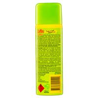 Keep out of reach of children. Extremely flammable. Do not spray directly on pets, exposed food, water, food preparation areas or food utensils. Do not store or use near naked flame, heat or any incandescent material. Do not spray towards the face. Avoid contact with cell phones, spectacles frames, painted surfaces, synthetic fabrics and vinyl plastics. Discontinue use if irritation or rash develops. For external use only.