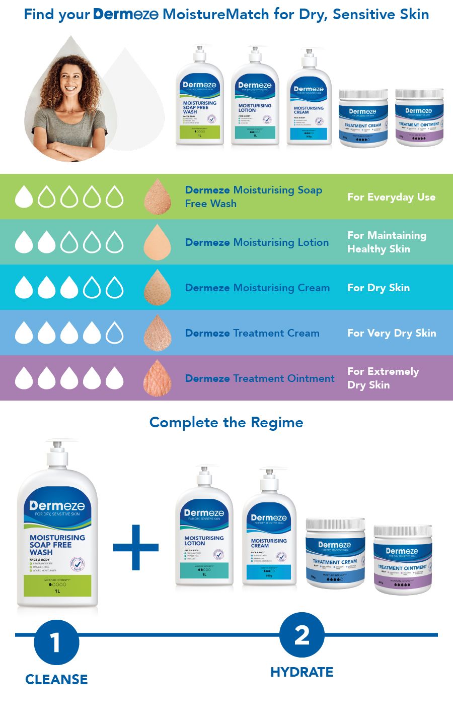 Dermeze hydrates your skin and helps strengthen the skin's protective barrier. The entire range is made up of ingredients which are non-irritant. All Dermeze products are gentle on babies' skin, kind to teens' skin and with moisture intensity that can moisturise ageing skin.