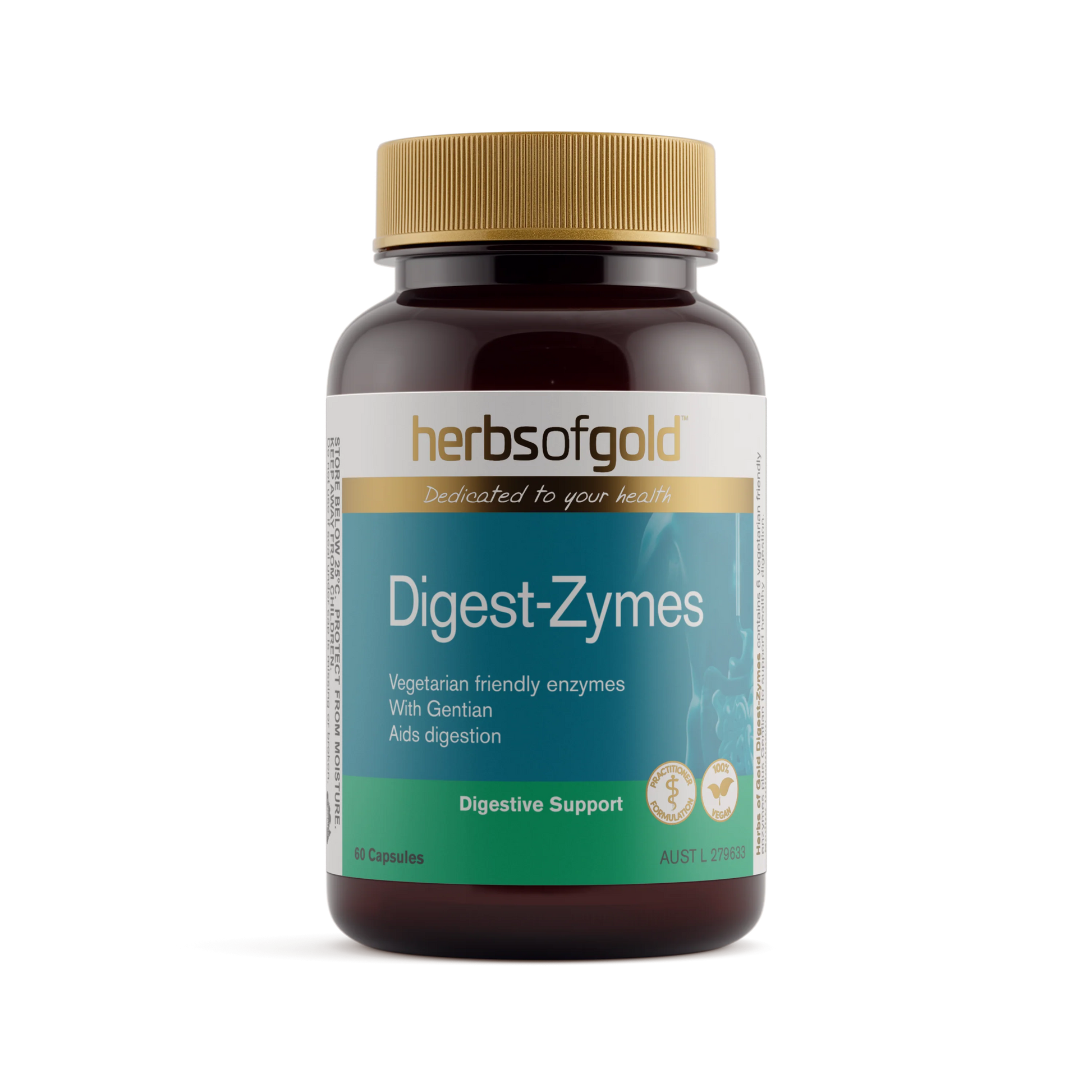 - Digest-Zymes contains Gentian, a herb traditionally used in Western herbal medicine as a bitter tonic and to relieve symptoms of indigestion, including abdominal pain, bloating and feelings of fullness.