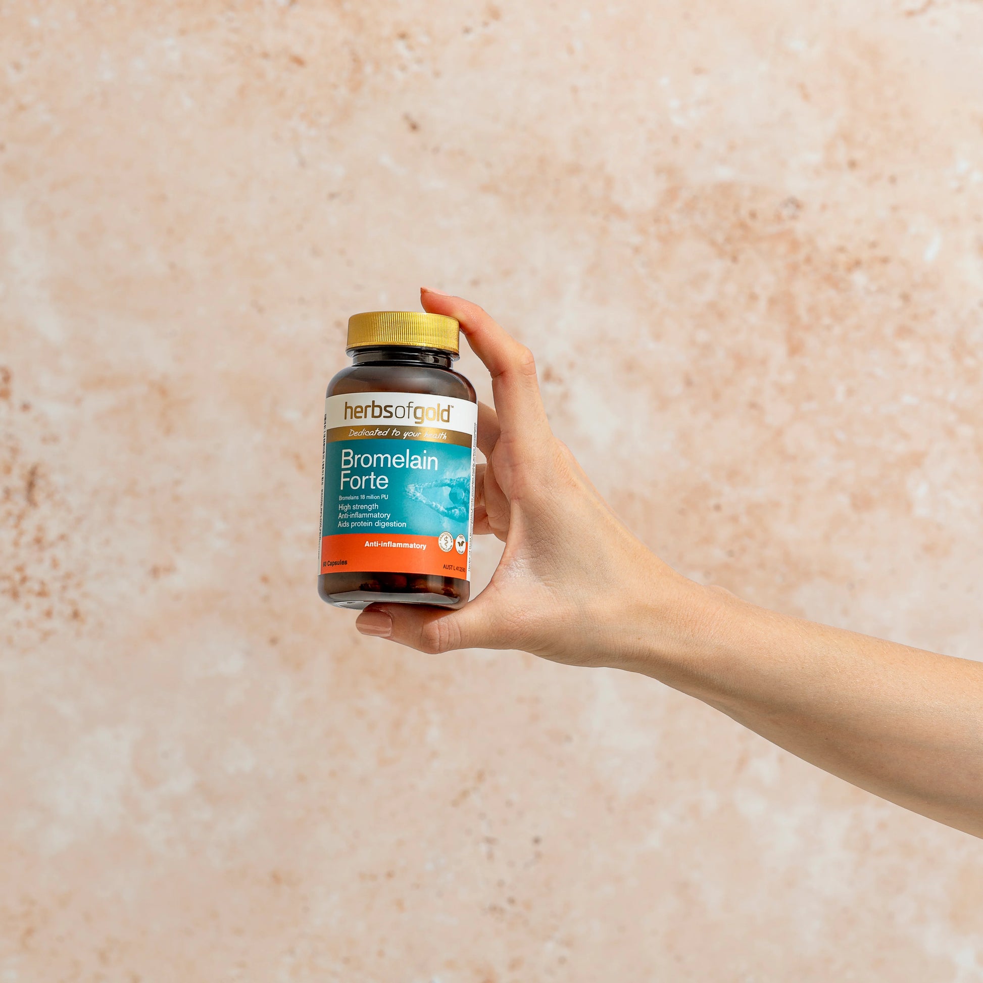 - Bromelain Forte contains 500mg of bromelain, a proteolytic enzyme derived from the fruit and stem of pineapple that assists the digestion of protein.