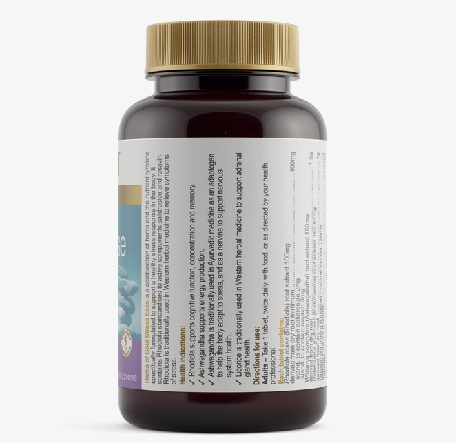 - Stress Ease contains Rhodiola, traditionally used in Western herbal medicine as an adaptogen to relieve the symptoms of stress and fatigue. Rhodiola is also traditionally used in Western herbal medicine to enhance physical stamina and performance.