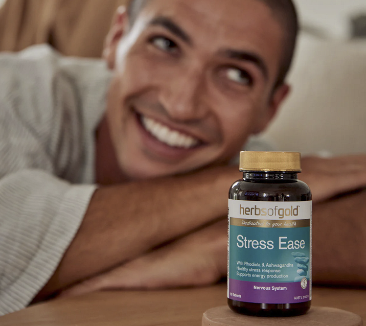 Herbs of Gold Stress Ease contains a blend of herbs to support a healthy stress response in the body.