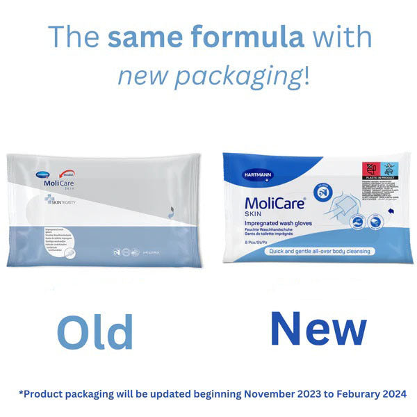 Description: MoliCare Skin Wash Gloves offer convenient whole body washing. The gloves contains nourishing panthenol and skin friendly Aloe Vera. MoliCare Skin Wash Gloves have a pH of 5.5 to maintain the skin's natural protection layer.