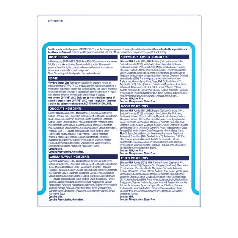 OPTIFAST VLCD Shakes are part of a very low calorie diet program. High in protein and contain essential nutrients for effective weight loss. The assortment includes 5 flavours.