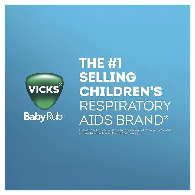 Vicks BabyBalsam Decongestant Chest Rub moisturises, soothes, and relaxes your baby. Together with your loving touch, Vicks BabyBalsam helps to gently moisturise, calm, soothe and relax your baby.Vicks BabyBalsam is specially developed for your baby in association with baby and skin experts. Made with fragrances of Rosemary, Lavender & Eucalyptus and extract of Aloe Vera and is dermatologists confirmed.